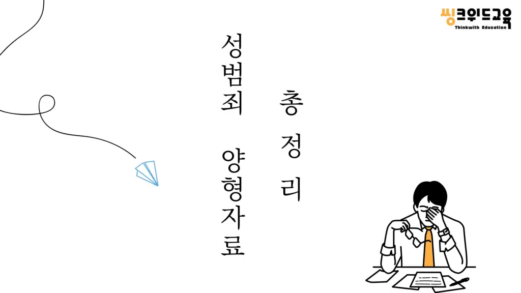 안녕하세요 여러분, 씽크위드교육 최환진 대표입니다. 씽크위드교육을 찾아주신 많은 분들께서 본인, 가족 또는 지인의 사건에 제출할 수 있는 양형자료들을 준비하시고자 오셨을 것입니다. 먼저 유죄 인정을 하였을 때, 법원이나 검찰 등에 제출하는 서류들을 너무 어렵게 생각하지 않으셔도 된다는 것을 말씀드리고 싶습니다. 이 칼럼에서는 성범죄 양형자료를 정리하면서 차근차근 어떠한 서류를 준비하고 어떻게 제출해야하는지 말씀드리겠습니다.